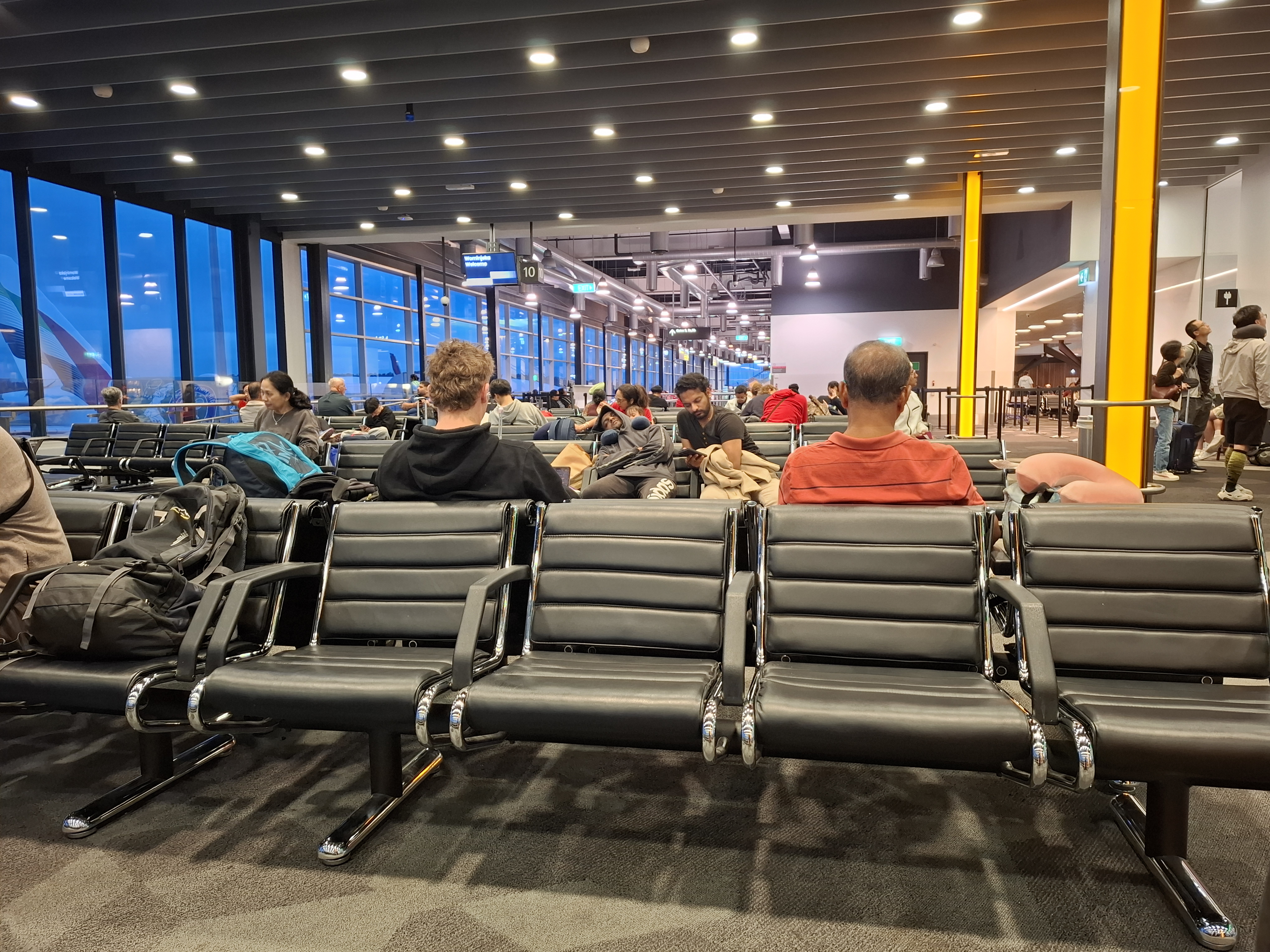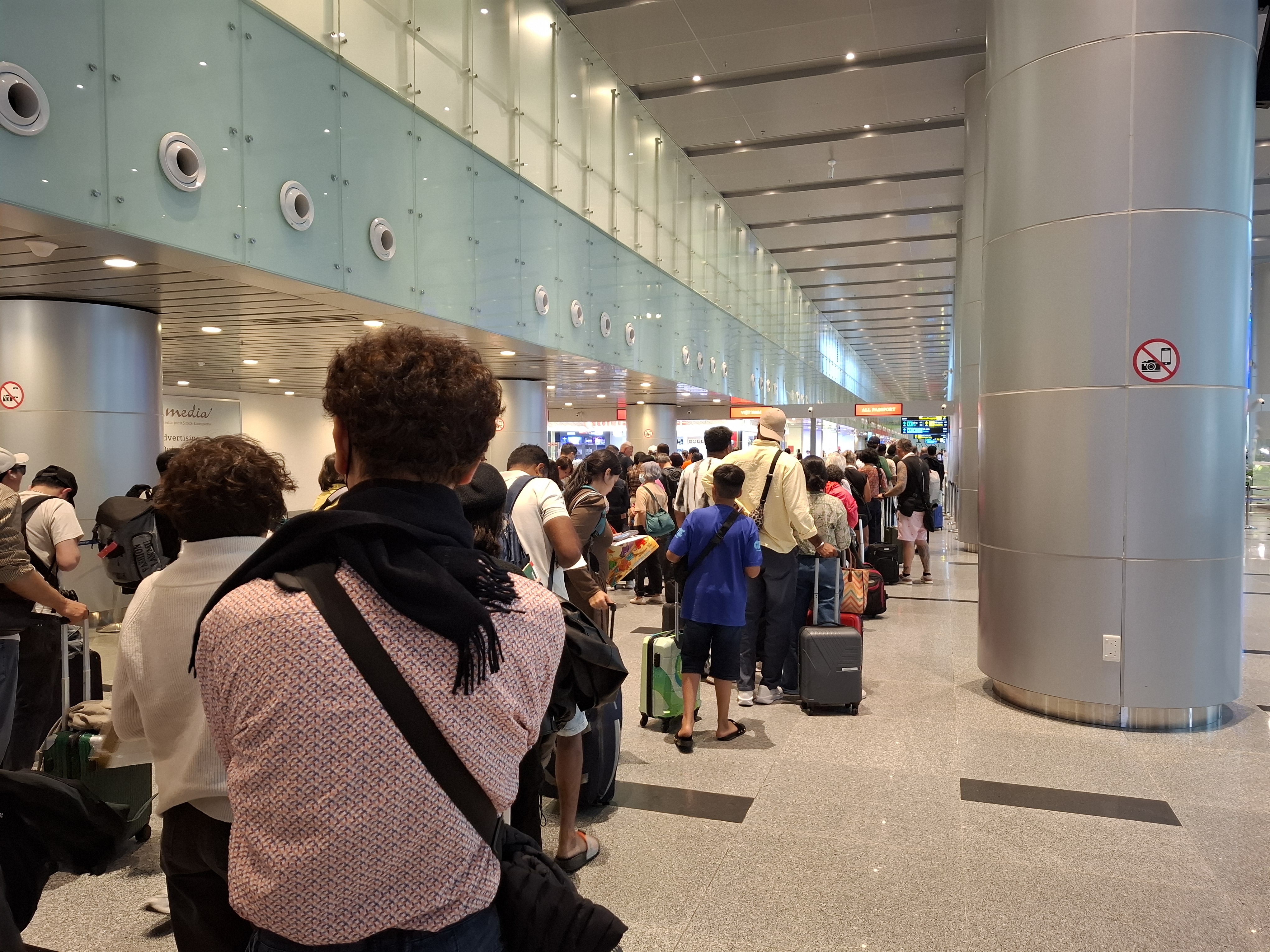 The board said they were checking in at gate N, but who needed that? I was a modern traveller (lol) who could check in online. I pulled the phone out and attempted to checked in, only to discover the app couldn't understand my e-visa. Frustrated, I lined up in the priority queue which seemed to be going nowhere. Frustrated even more, I left and and joined the "cattle class" line. Handing my passport to the lady behind the desk, she asked "Are you aware the flight is delayed 3 hours?"